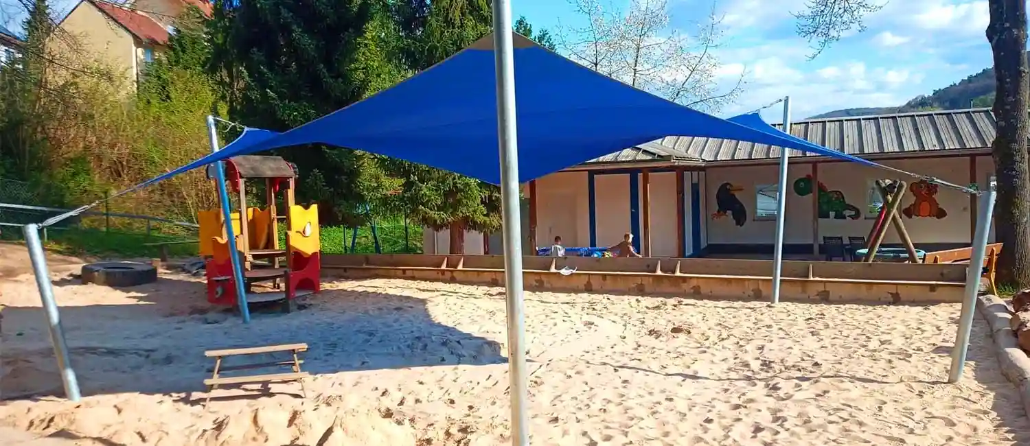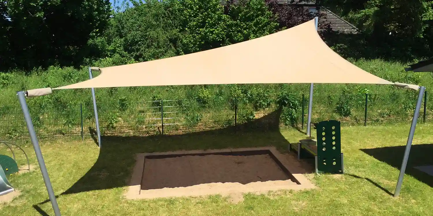 Feststehende Sonnensegel bieten dauerhaften, besonders stabilen Sonnenschutz für stark genutzte Außenbereiche. Sie sind individuell geplant, windstabil verspannt und ideal für Kitas, Schulen, Freibäder sowie private und gewerbliche Flächen.