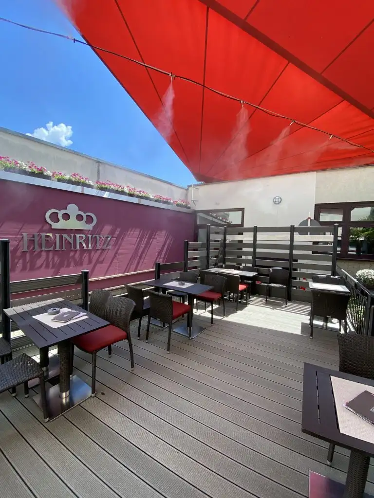 Die Technologie basiert auf feinster Hochdruckvernebelung: Das Wasser verdunstet direkt in der Luft und erzeugt natürliche Verdunstungskälte. So wird die Temperatur im beschatteten Bereich um mehrere Grad reduziert.